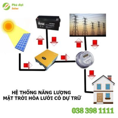 3. Hòa lưới (nếu có): Khi pin đã đầy và vẫn còn điện mặt trời dư, lượng điện này có thể được phát lên lưới điện quốc gia (tùy cài đặt và chính sách hiện hành).