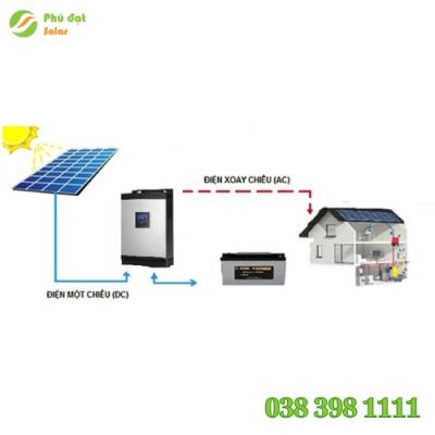 - Điện mặt trời tạo ra sẽ được nạp vào pin lưu trữ.